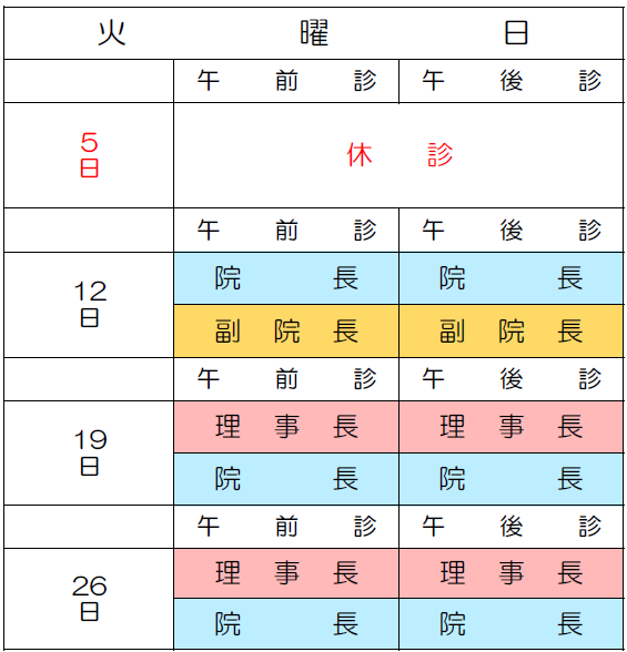 5月の外来診療担当医(火・土)をお知らせします。